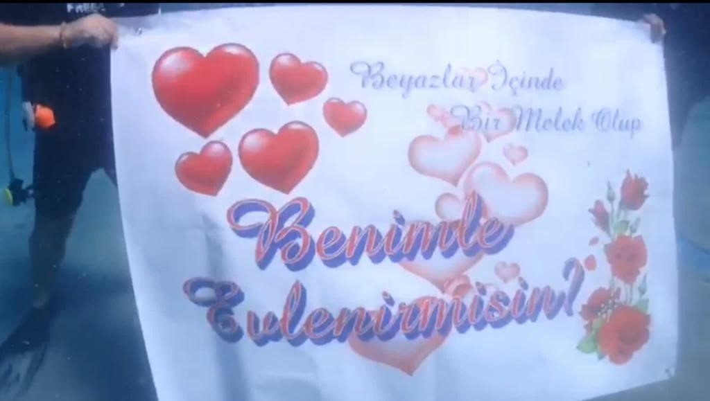 Dalış eğitmenlerinin açtığı “Benimle Evlenirmisin” yazılı afiş ile birlikte, Ercan Alaca kız arkadaşı Ayşegül Yalçın’a denizin ortalama 4 metre altında tek taş yüzük takarak evlenme teklifi yaptı. Yalçın, tek taş yüzüğü takarak evlenme teklifini kabul etti.