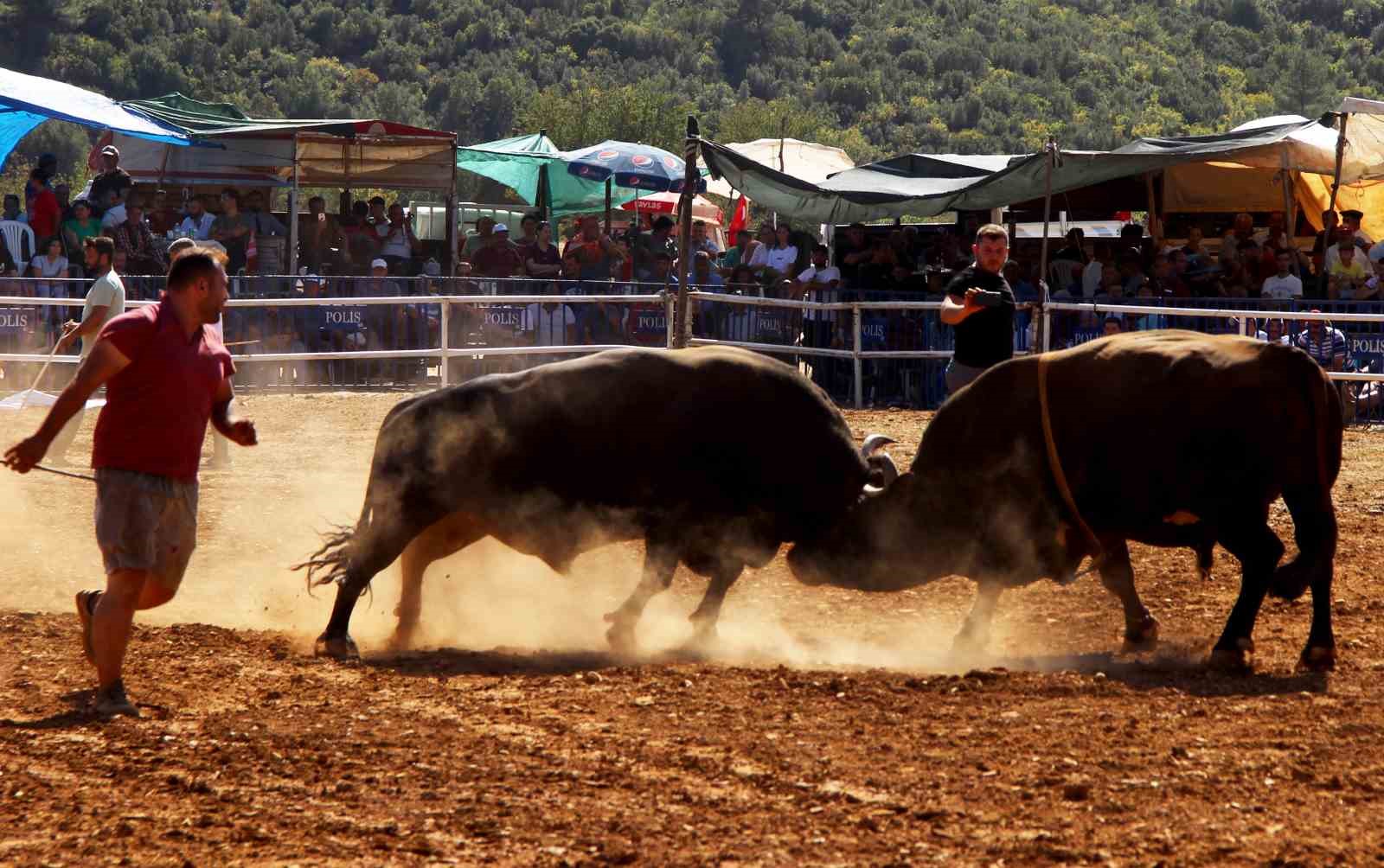 Sabah başlayan boğa güreşlerini izlemek için Aydın, Denizli ve Muğla’nın değişik ilçelerinden binlerce vatandaş 35 derece sıcak altında boğaların mücadelesini izledi. Tozkoparan, deste, küçük ayak, büyük ayak, küçük orta, büyük orta, baş altı ve baş kategorilerinde güreşen boğaların güreşinden elde edilen gelir mahallenin ihtilaçları için kullanılacak.