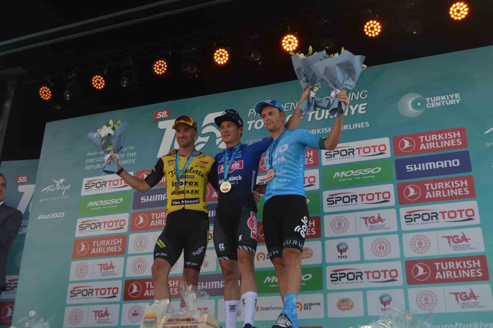 58. Cumhurbaşkanlığı Türkiye Bisiklet Turu’nda dördüncü gün büyük bir mücadeleye sahne olurken 165.3 kilometre mesafeyi 3 saat 50 dakika 17 saniye ile Alpecin Takımı’ndan Jasper Philipsen birinci tamamladı. Turun dördüncü gününde dereceye giren bisiklet sporcularının ödüllerini Marmaris Atatürk Meydanı’nda kurulan platformda, Muğla Valisi İdris Akbıyık, Marmaris Aksaz Deniz Üs Komutanı Tuğamiral Neslim Eski, Marmaris Kaymakamı Nurullah Kaya, İl Jandarma Komutanı Tuğgeneral Ali Gemalmaz takdim etti.