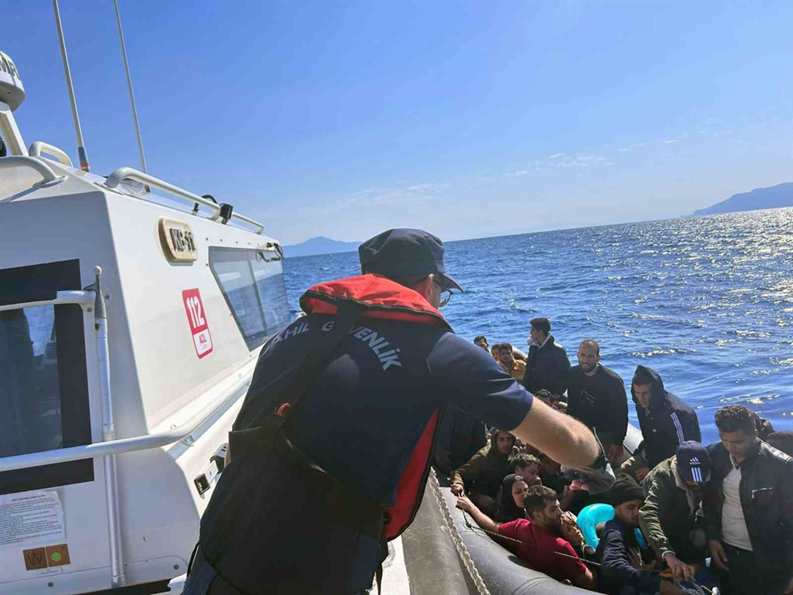 Muğla’nın Datça ilçesi açıklarında Yunanistan sahil güvenlik unsurları tarafından 2 lastik bot ve bir can salı içinde Türk karasularına geri itilen 69 düzensiz göçmen kurtarıldı.