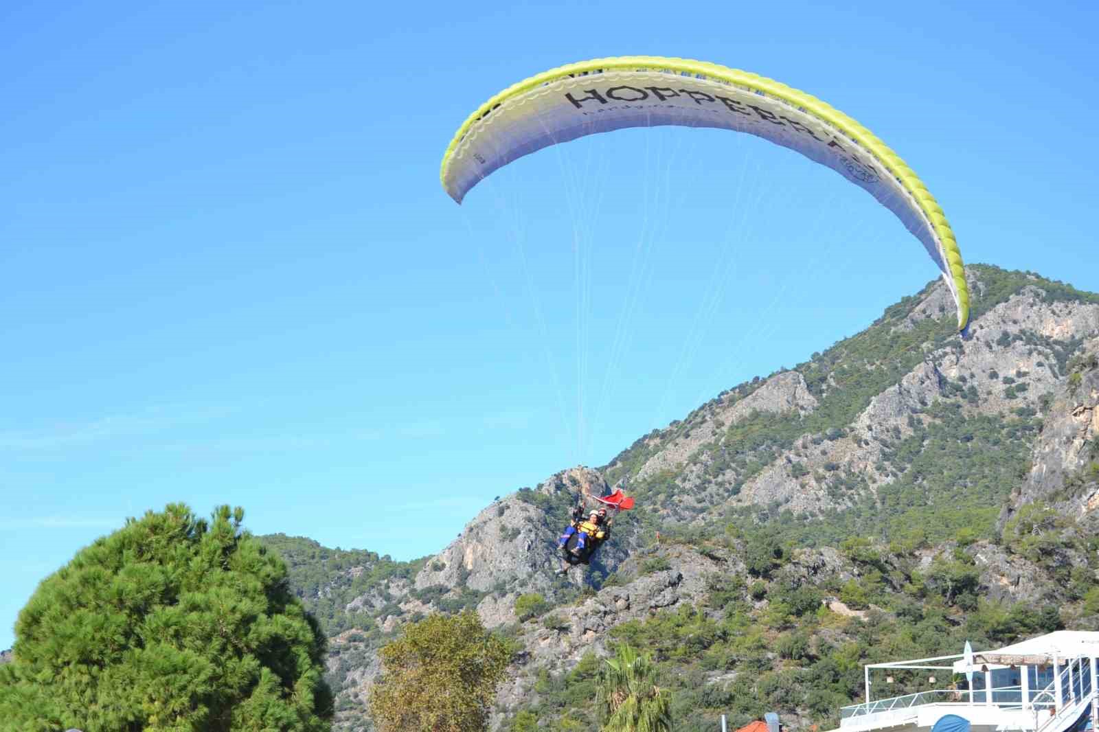 Fethiye’de sağlık personelleri yamaç paraşütü yaptı, Türk bayrağı açtı