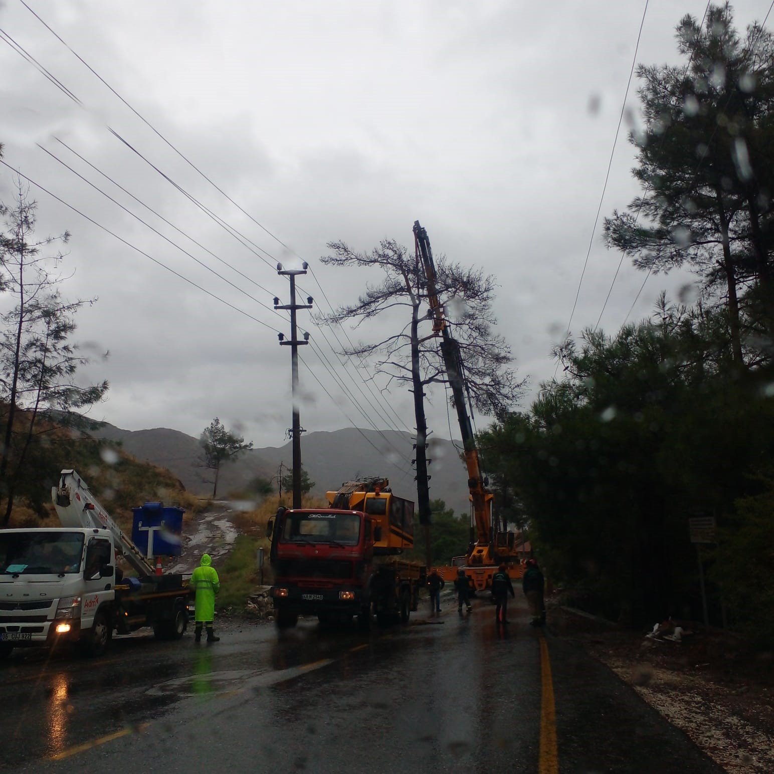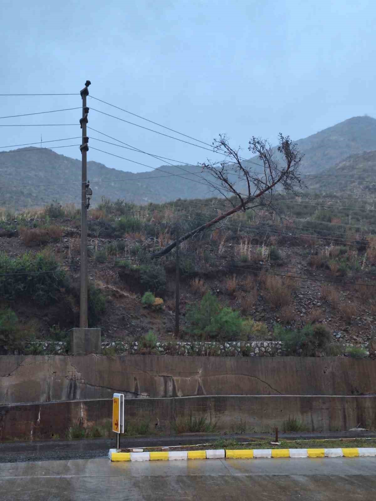 Marmaris’e 11 kilometre mesafedeki İçmeler Mahallesi’nde yağmur ve şiddetli rüzgarın etkisi ile büyük Marmaris yangınından sonra kalan bazı ağaçlar, elektrik tellerinin üzerine düştü. Ekiplerin hızlı müdahaleleri ile her hangi bir olumsuz durum yaşanmadan sorun çözülürken ilçe genelinde devrilme tehlikesi oluşturan ağaçlar için önlemler alındı. Selimiye Mahallesi yolunda yola düşen dev kaya parçası İlçe Jandarma trafik ekiplerinin güvenlik önlemleri almasının ardından yoldan kaldırıldı.