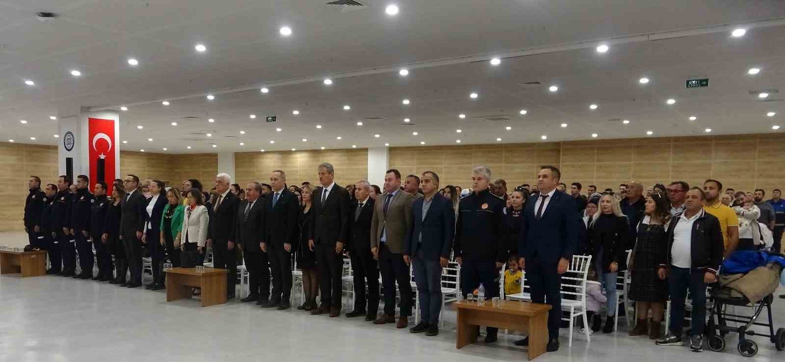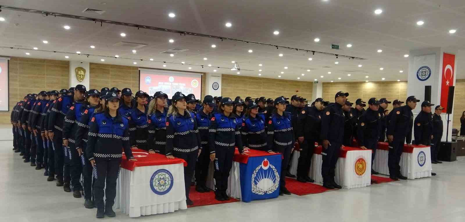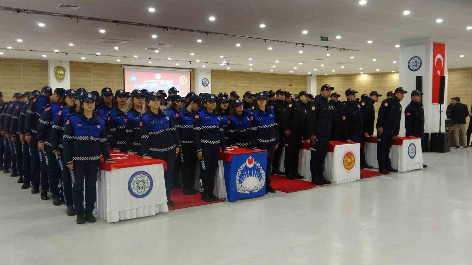 Türkan Saylan Çağdaş Yaşam Merkezi’nde düzenlenen törende 77 itfaiye eri, 59 zabıta memurunun yemin ederek aday memurluktan asil memurluğa geçti. Törende konuşan Muğla Büyükşehir Belediye Başkanı Dr. Osman Gürün, “Memuriyete girmenin ilk kısmını bitirdiler. Yemin töreni ile asil olarak göreve başlayacaklar. Özellikle İtfaiye bir kentin halkının belediyesine güven duyması için en önemli birimlerden birisi. Muğla’da itfaiyemiz, 6 dakika 58 dakikada olay yerine ulaşabiliyor. Bu süre ortalamanın üzerinde ve çok önemli. Hala biz Bakanlıktan eksik kalan kadroların doldurulması için kadro istiyoruz. Umarım memur olarak arkadaşlarımız eşit koşullarda çalışmaya devam eder. Üniforma taşıyan iki birimle birlikteyiz. Çok önemli olduğunu ifade etmek istiyorum. Bu iki grup, üniformadan güç alarak halka yüksekten bakmayacak. Özellikle zabıtamız, cezai işlemlerde vatandaşa durumu iyi izah edecek. 59 zabıtadan 16 kadın elemanımız var “dedi.