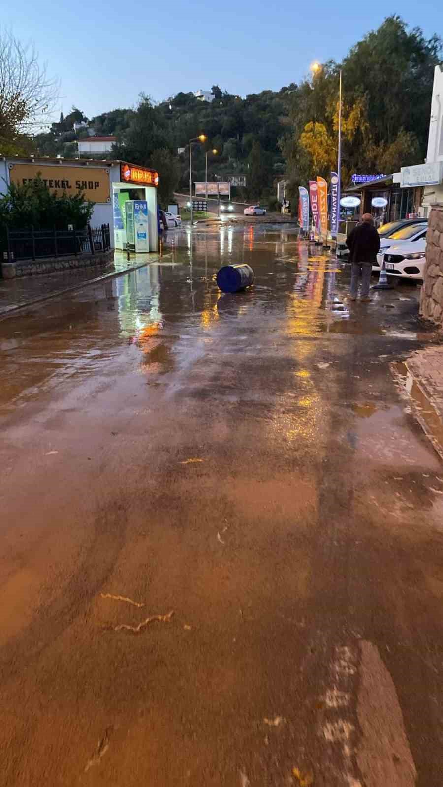 Muğla’nın Bodrum ilçesinde içme suyu ana isale hattının patlaması sonucu bazı iş yerlerini su bastı.