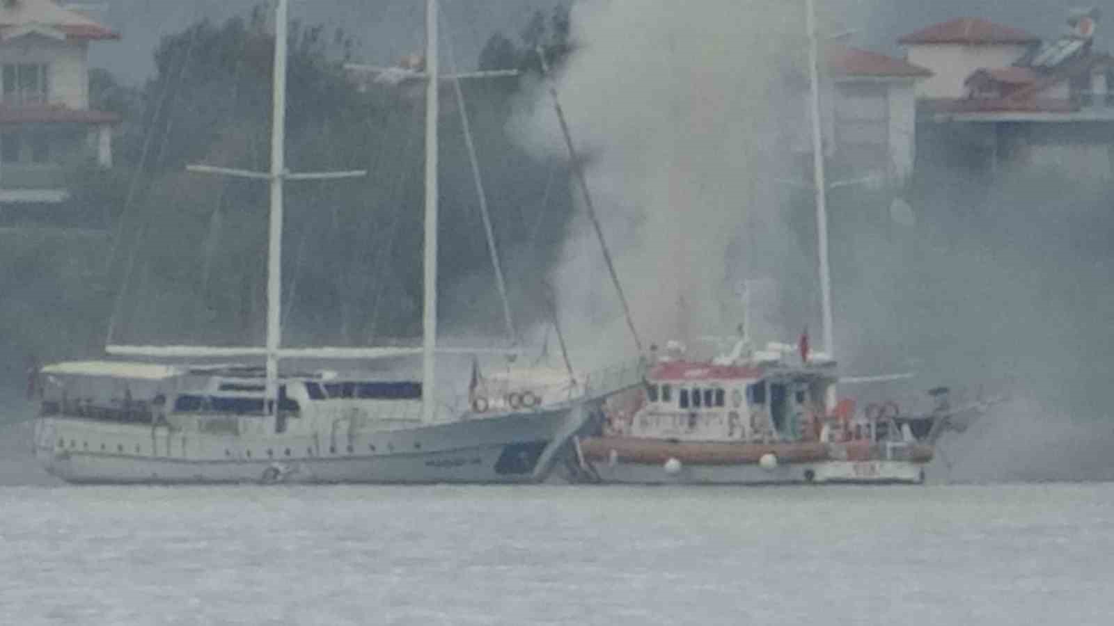 Muğla’nın Fethiye ilçesinde gulet teknede çıkan yangın, denizden müdahaleyle söndürüldü.