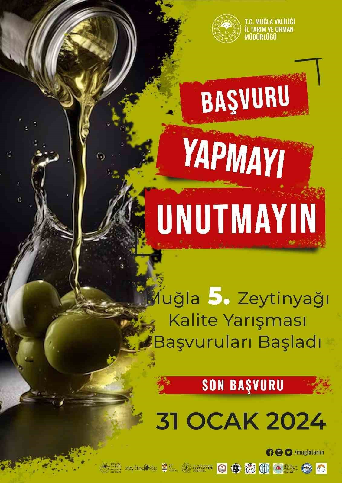 Muğla İl Tarım ve Orman Müdürlüğü tarafından en iyi yağ benim diyorsan sen de katıl sloganı ile gerçekleştirilecek olan yarışmaya katılmak isteyen vatandaşların 31.01.2024 tarihine kadar başvuruda bulunulacağı bildirildi.