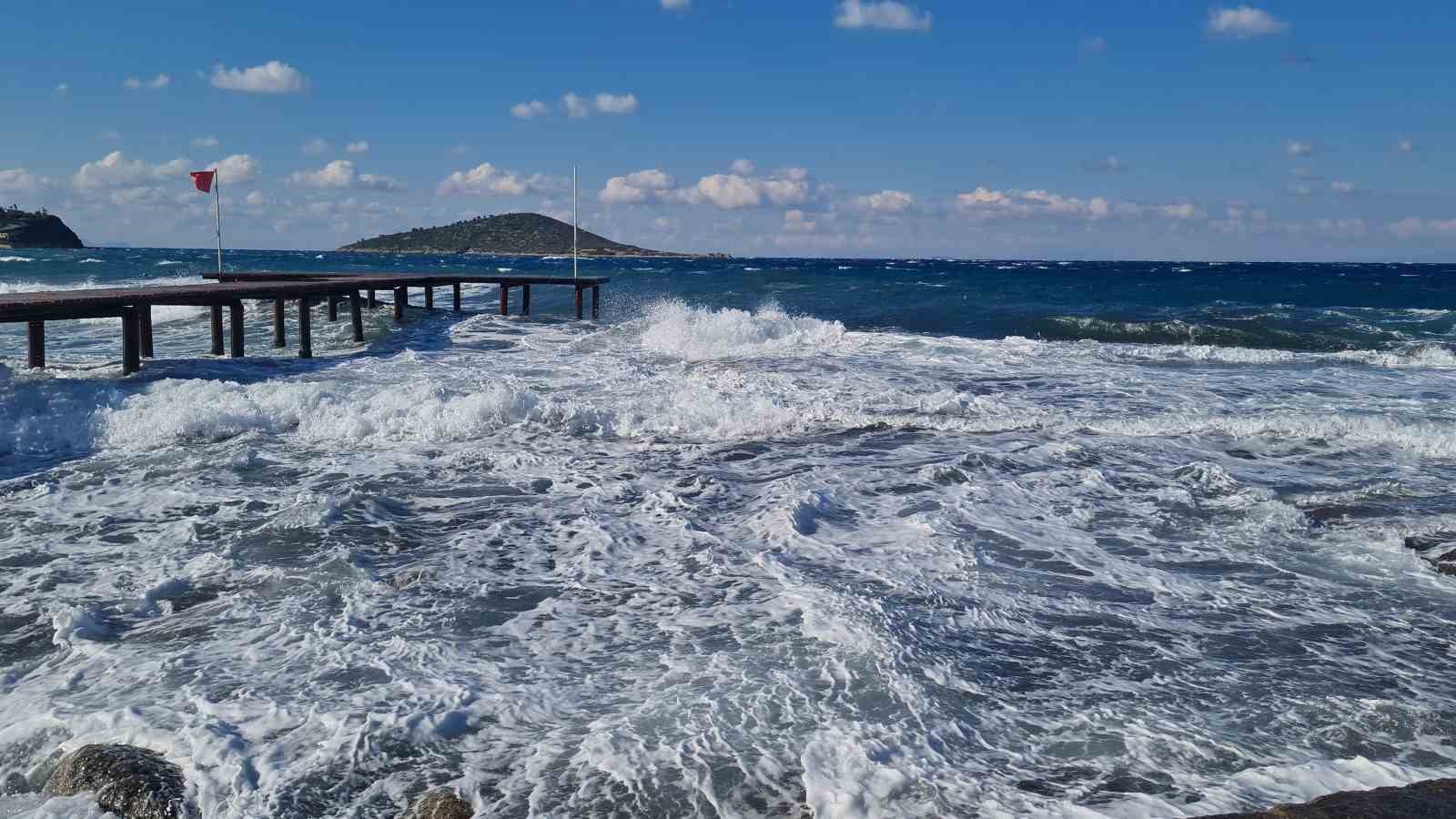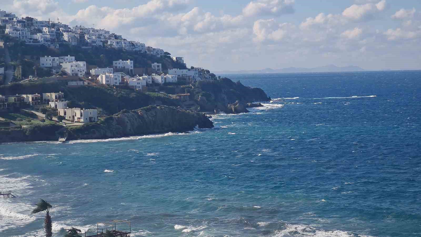 Muğla’nın Bodrum ilçesinde etkili olan fırtına sebebiyle günlük yaşam olumsuz etkiledi. Rüzgar, hissedilen hava sıcaklığını da düşürdü.