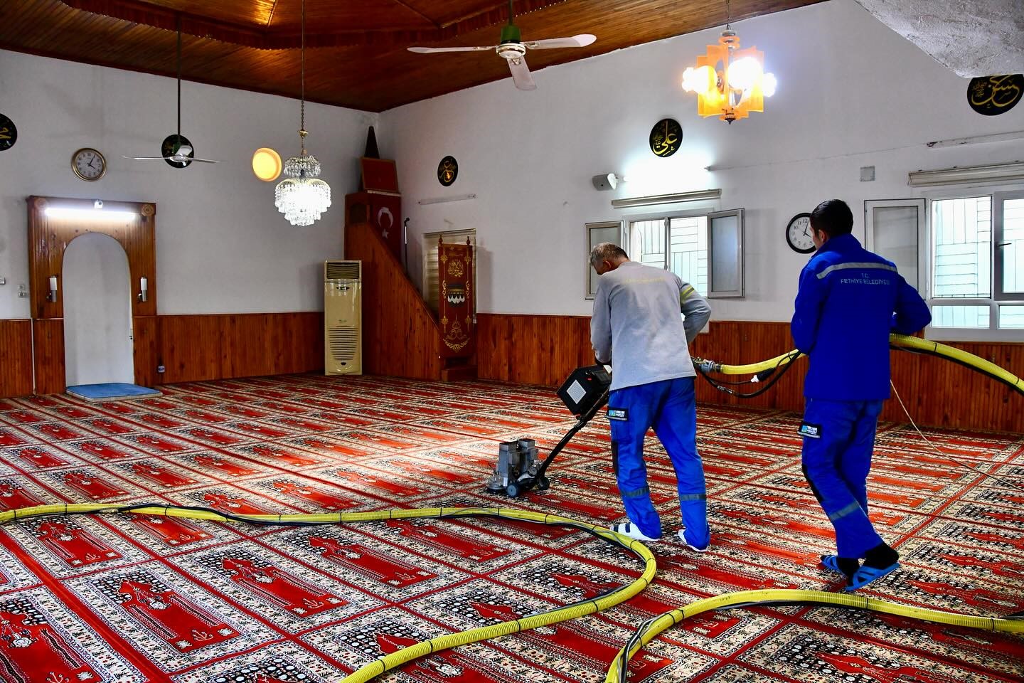 Fethiye genelinde temizlik çalışmaları devam ederken, görevliler tarafından ilçe genelinde bulunan tüm ibadethanelerde temizlik çalışması başlatıldı. Camilerde çalışma gerçekleştiren ekipler, yaptıkları işlemlerle ibadethaneleri daha hijyenik bir hale getirdi. İbadethanelerin pırıl pırıl olduğunu gören vatandaşlar ise görevlilere teşekkür etti.
