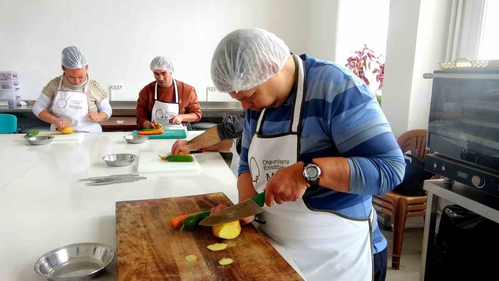 Muğla Halk Eğitim Merkezi Olgunlaşma Enstitüsü ve Muğla Engelliler Derneği iş birliği ile özel bireylere yemek hazırlama kursu veriliyor.