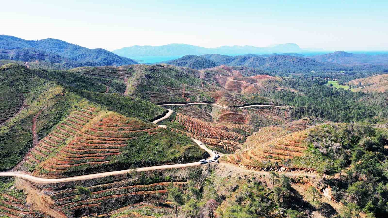 Muğla’nın Milas ilçesinde 2021-2022-2023 yıllarında yaşanan orman yangınlarının ardından yapılan çalışmalar sonucu yanan alanlar yeniden küllerinden doğuyor.