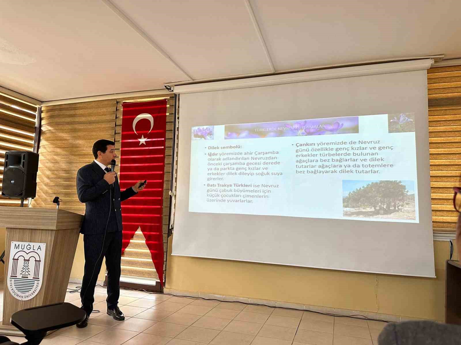 Prof.Dr. Ekrem Ayan, “Nevruz, bahar bayramıdır. Baharın geldiği günü kutlayan bir bayramdır. Kimin kutladığı, ne zaman, nerede ve nasıl kutlandığı konusunda kesin ve net bir bilgi vermek zordur. Zor şartlı bir kıştan çıkmış ve baharı bekleyen bütün insanlığın bayram günüdür. Dolayısıyla Nevruz Bayramı’nın tarihi olarak kısaca bunu söyleyebiliriz. Kimi kaynaklara göre 12 hayvanlı Türk takviminin yılbaşı 21 Mart Nevruz günü gibi yine Göktürk Devleti’nde Uygur Devleti’nde bu tarz uygulamaların var olduğunu biliyoruz. Hz. Adem’le Hz. Havva’nın birbirini bulduğu gün 21 Mart olarak değerlendirilir. Hz. Adem’in çamurunun yoğrulduğu günden 21 Mart olarak değerlendirilir. Tarihte pek çok olay Nevruz bayramının tarihi yani 21 Mart olarak geçer ancak resmi bir satır metin bile yoktur. Nevruz Bayramını 12 ülke kutlar Afganistan, Azerbaycan, Hindistan, İran, Irak, Kazakistan, Kırgızistan, Özbekistan, Pakistan, Tacikistan, Türkmenistan, Türkiye ve 13. Olarak Moğolistan kutlar. Türkiye haricinde tüm ülkeler Nevruz bayramını 10 gün tatil ederek kutlarlar” diyerek baharın başlangıcının kutlandığı gelenek haline gelen bir gün olduğu hakkında bilgi verdi.