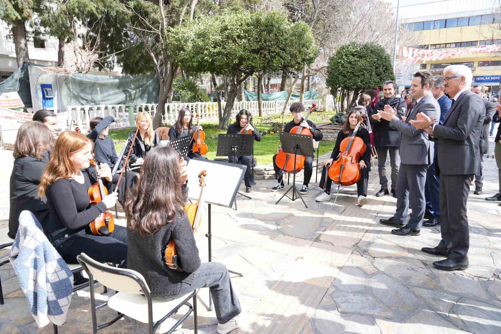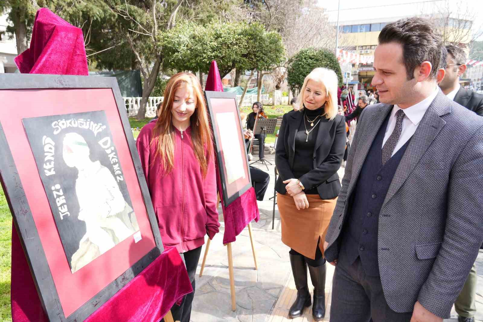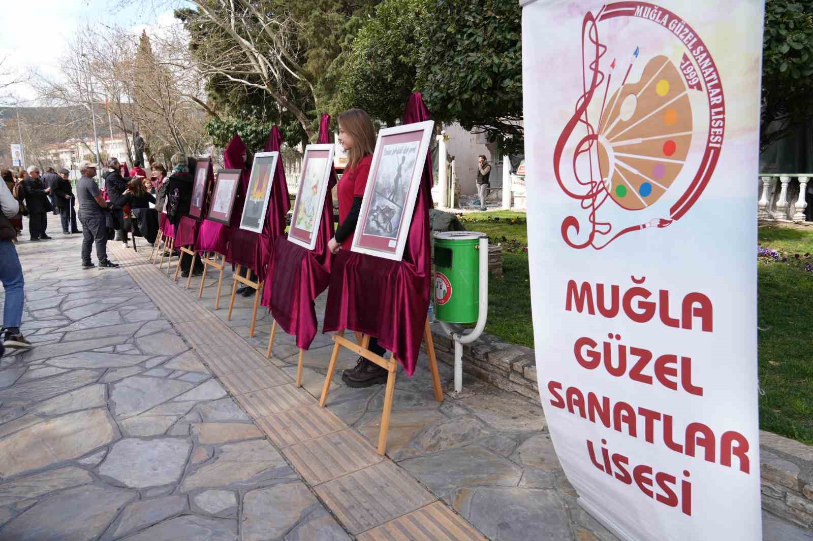 Muğla Güzel Sanatlar Lisesi müzik bölümü öğrencileri tarafından icra edilen müzik konseri eşliğinde resim sergisini gezen İl Müdürü Emre Çay, tuvalleri başında duran öğrencilerle yapmış oldukları resim, deyim ve atasözleri üzerine sohbet etti.