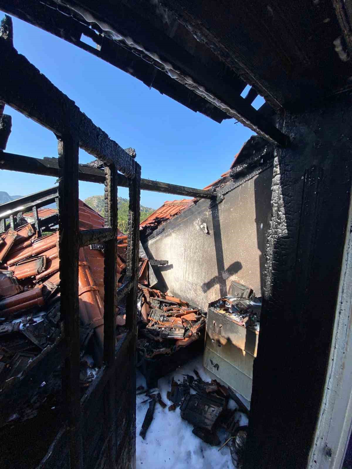 Muğla’nın Ortaca ilçesi Dalyan Mahallesi’nde meydana gelen yangında otelin çatı katı küle döndü.