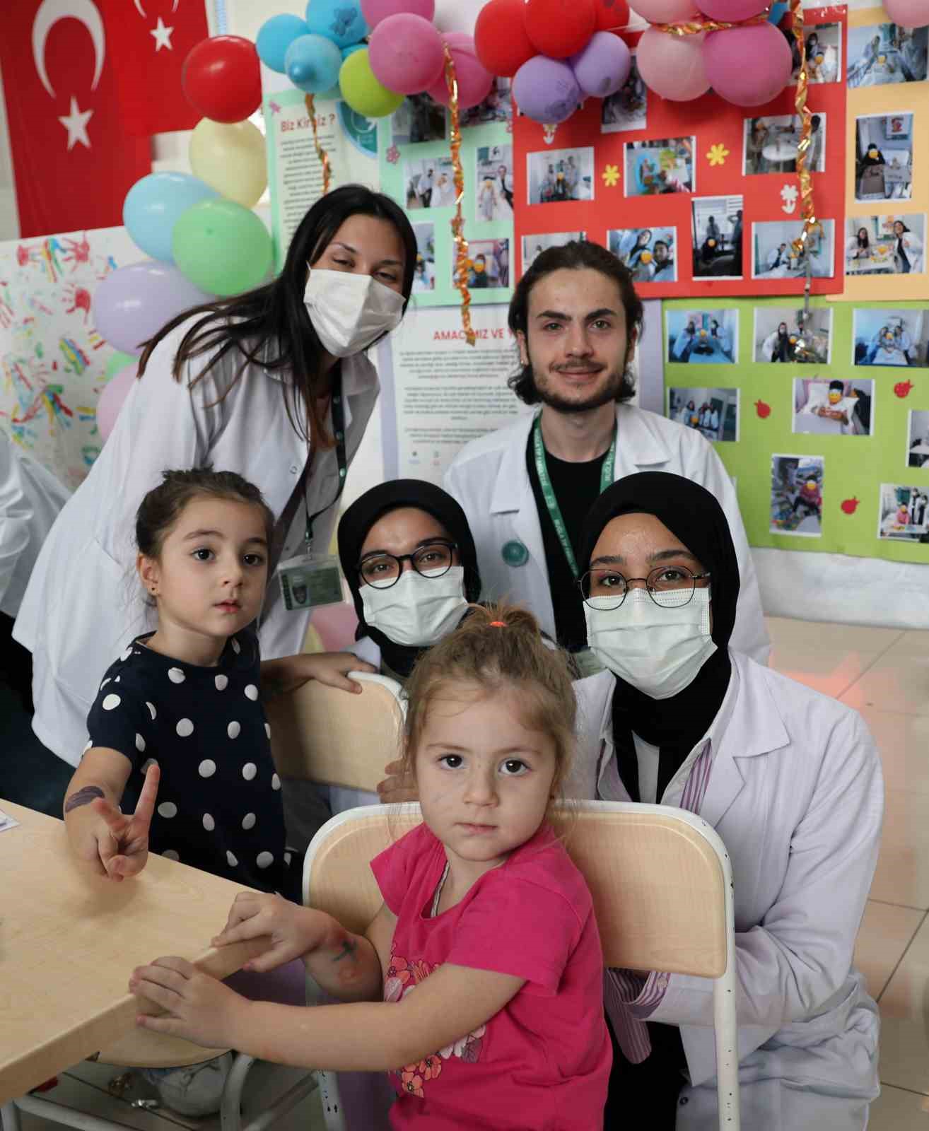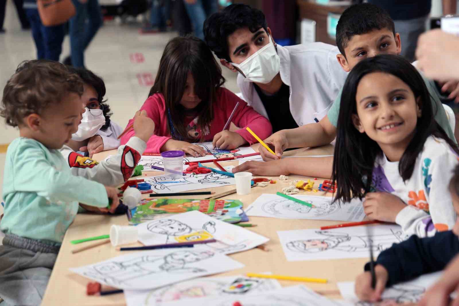 Muğla Sıtkı Koçman Üniversitesi Tıp Fakültesi ‘1 Çocuk 1 Dilek Muğla’ gönüllü öğrenci grubu tarafından hastane giriş arenasında erken 23 Nisan kutlama programı için stant kuruldu. Stantta yüz boyama, resim boyaması, kutu oyunları, oyun hamuru ve yapbozlarla kostüm giyen genç gönüllülerimizle beraber oynayarak eğlendiler.