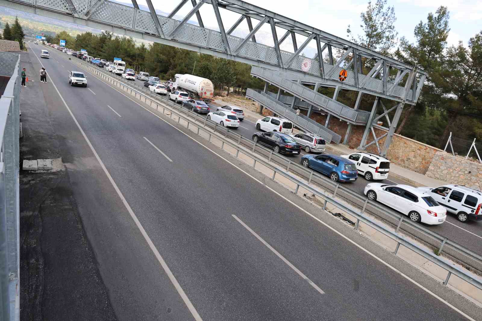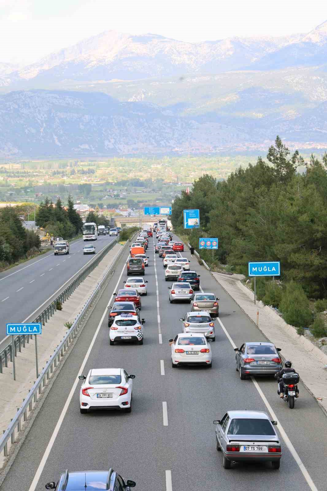 9 günlük Ramazan Bayramı tatili için özel araçları ile Muğla’nın Marmaris, Datça ve Fethiye ilçelerine gelen vatandaşlar, tatil sonu dönüşlerinde karayolunda uzun kuyruklar oluştu.