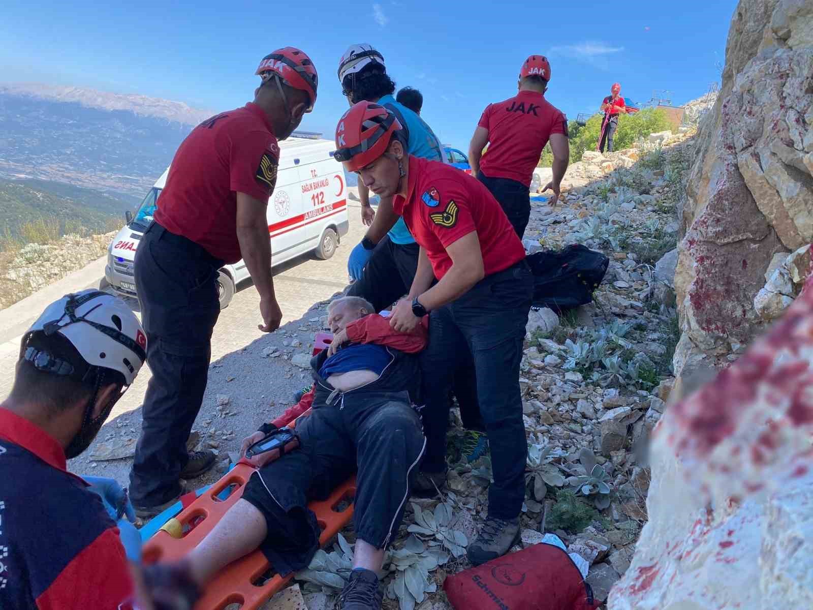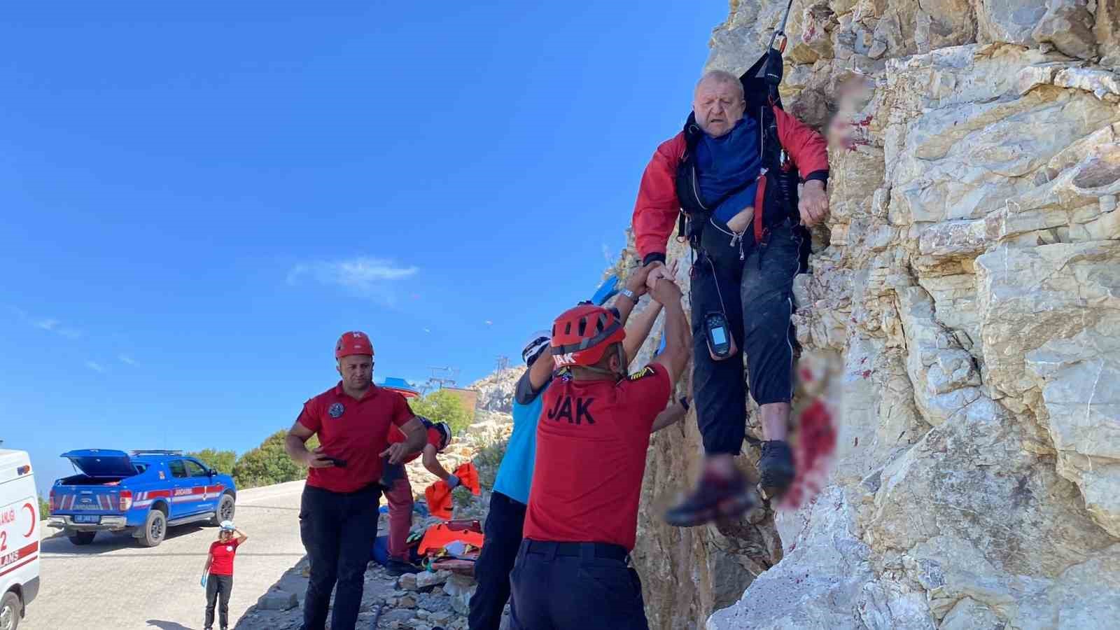 Muğla’nın Fethiye ilçesinde Babadağ pistinden kalkış yaptığı sırada paraşütünün açılmaması kayalıklardan düşerek yaralanan 77 yaşındaki İngiliz paraşütçüyü, UMKE ve JAK ekipleri kurtardı.