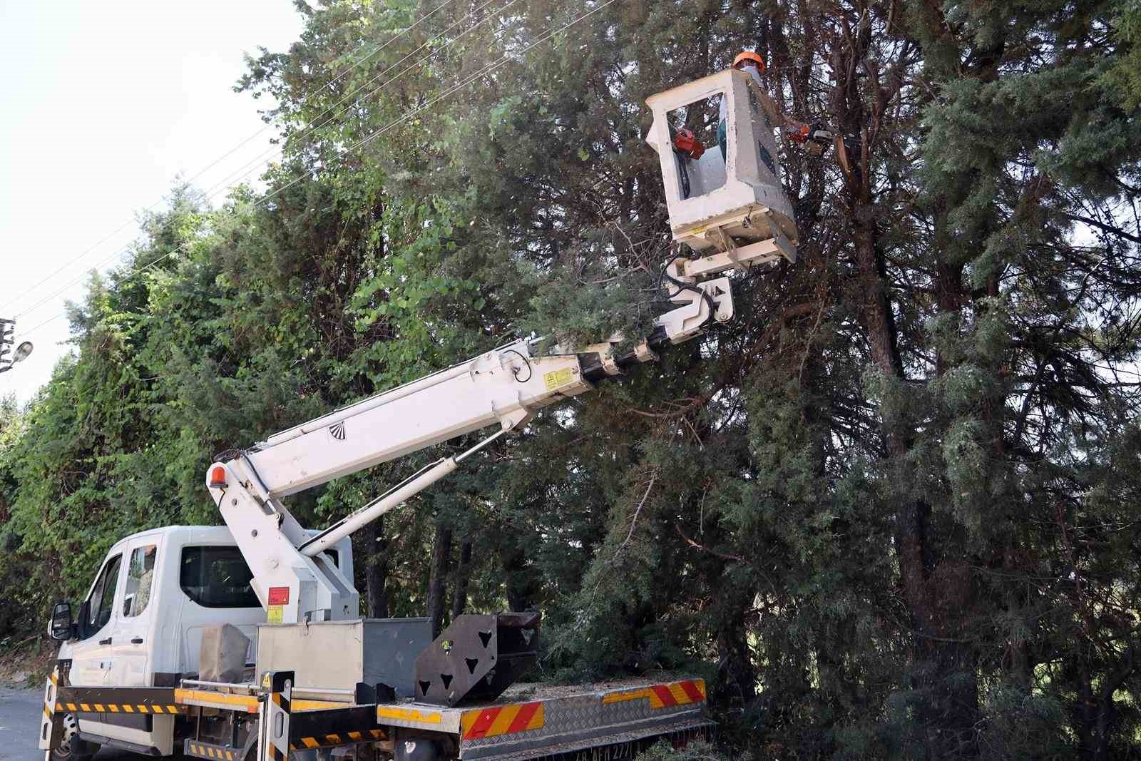 Menteşe Belediyesi Karabağlar Yaylası’nda elektrik tellerine temas eden ağaç dallarını buduyor. Yangına sebebiyet verebilecek ağaçların dallarını budama işi Menteşe Belediyesi ve elektrik dağıtım şirketinin ortak çalışması ile yapılıyor.