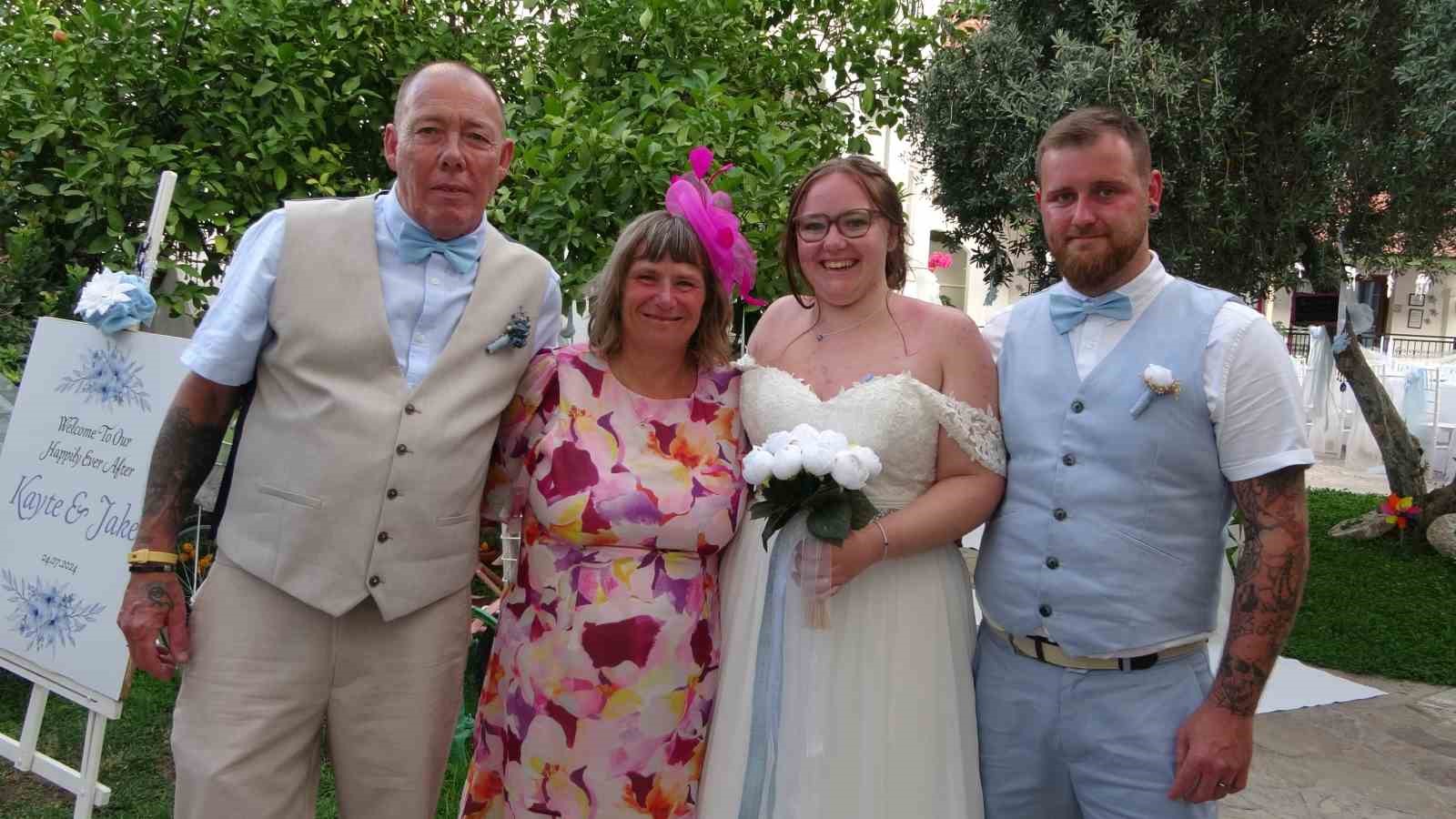 Katey ve Jake’in nikahlarını organize eden ve neredeyse 20 yıldır ailenin tatil yaptığı otelin işletmecisi Nevcihan Eren, “Evlenen çiftimizden, gelin hanım beş yaşından beri otelimizde konaklıyor geçen sene annesi babası burada evlenmeyi tercih etmişti aynı zamanda da tatillerini yapıyorlar. Bu sene de kızını evlendiriyoruz. Bizim için çok duygusal çünkü beş yaşındaki halini burada yüzmeyi öğrendiği halini hatırlayınca insan biraz duygusallaşıyor açıkçası çok mutluyuz” dedi.