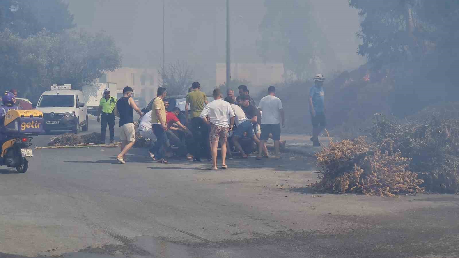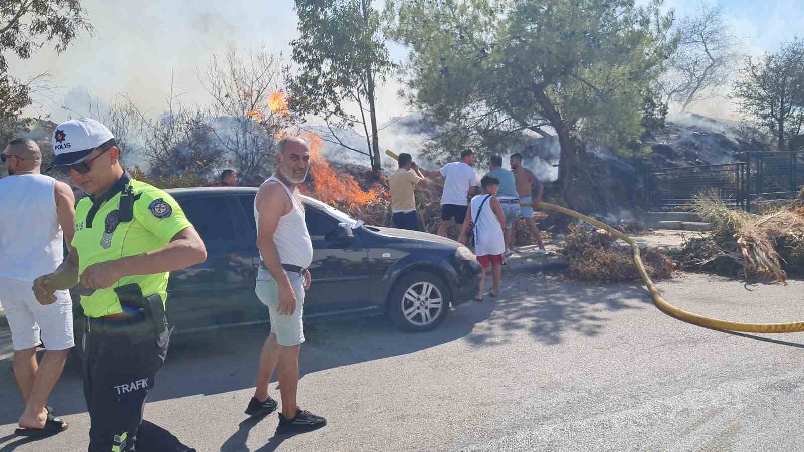 Gümbet Mahallesi’nde otluk alanda bugün yangın çıktı. Alevler, rüzgarın etkisiyle kısa zamanda yayıldı. Yangını fark eden vatandaşlar, bahçe hortumları ve kovalarla alevleri söndürmeye çalıştı. Vatandaşlar, bölgeden geçen bir su tankeriyle de söndürme çalışması yaptı. Alevlerin yol kenarında park halindeki otomobile yaklaşması üzerine otomobil vatandaşlar tarafından kol gücüyle kenara çekildi.