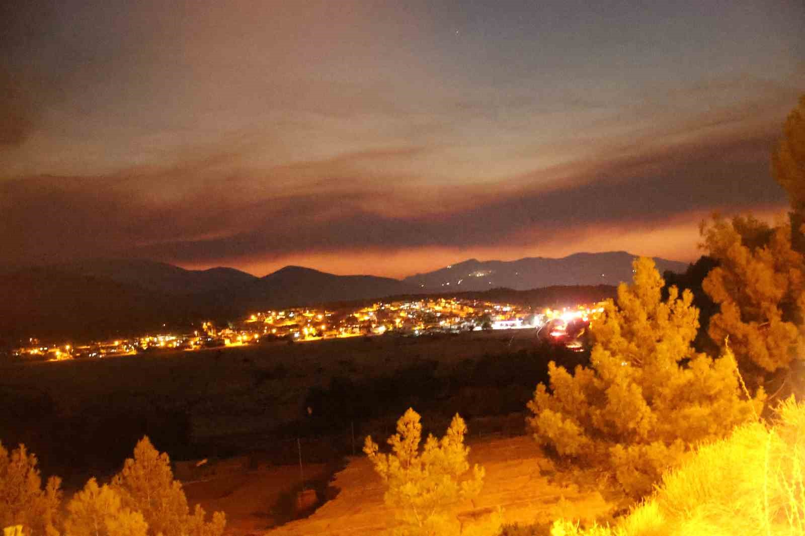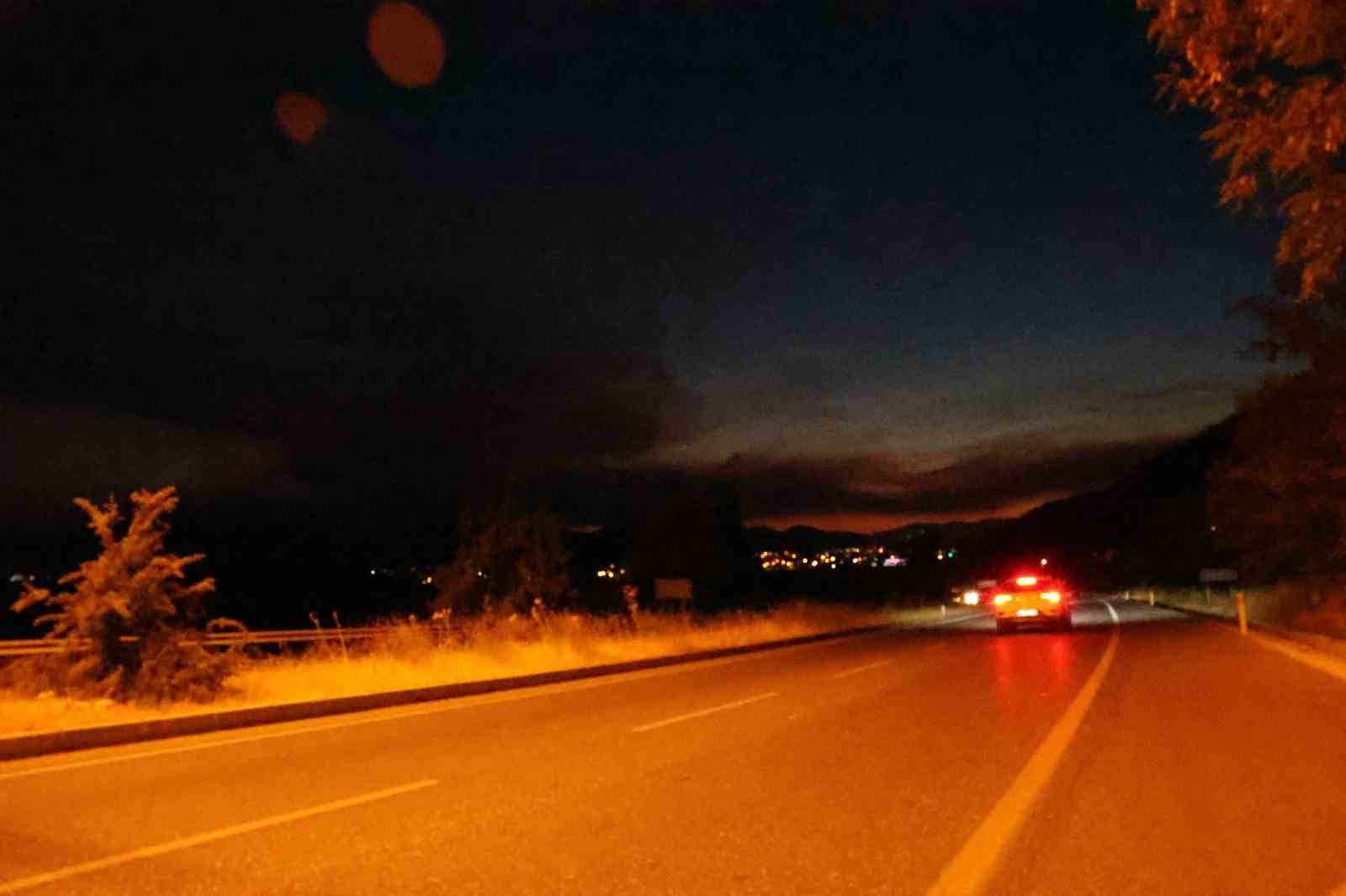 Aydın’ın Bozdağan ilçesi ve Muğla’nın Milas ilçesi Beçin mahallesinde başlayan yangını söndürme çalışmaları devam ederken, yangın rüzgarın da etkisi ile etkisini sürdürüyor. Havanın kararması ile hava müdahalesinin sona erdiği orman yangınının etkisi Menteşe’ye kadar ulaştı. Muğla’nın merkez ilçesi Menteşe’de havanın kararması sonrası gökyüzünü kara yangın bulutları kapladı.