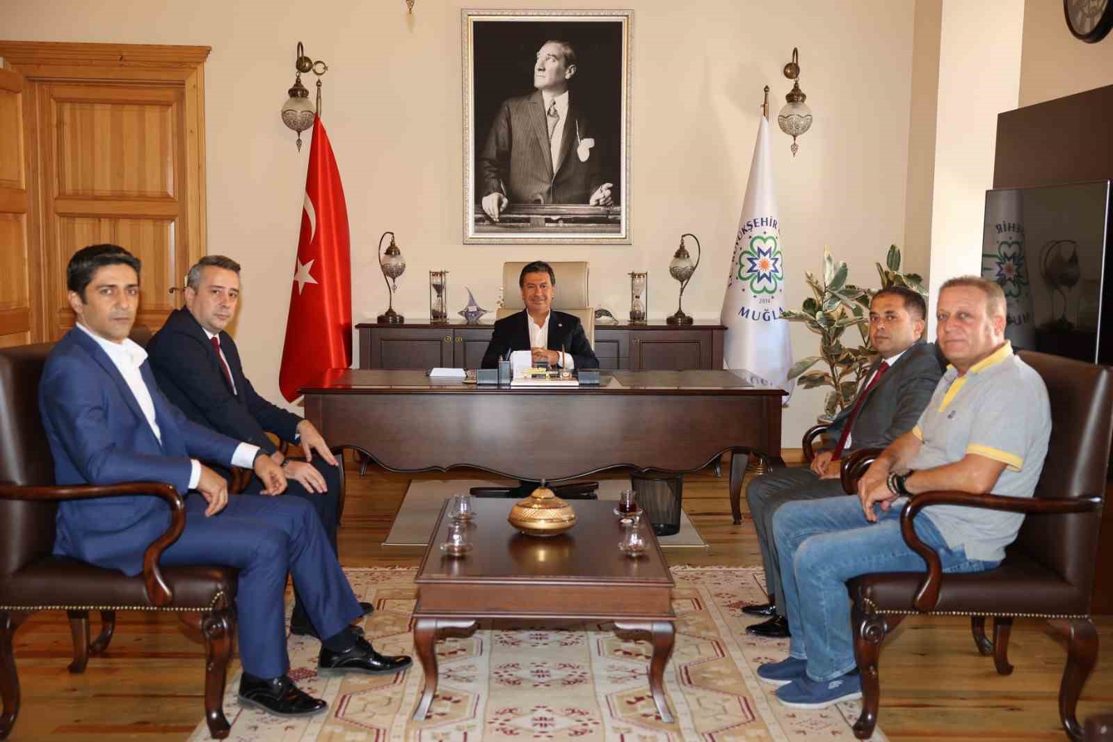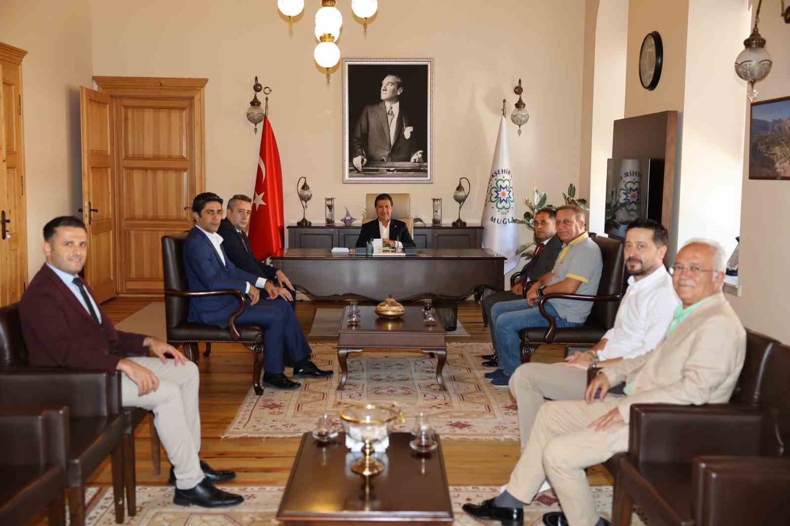 GÖKTEPE KÜLTÜR VE DAYANIŞMA DERNEĞİ BAŞKANI İBRAHİM ŞAHİN, BAŞKAN YARDIMCISI İSMAİL ZENGİN VE YÖNETİM KURULU ÜYELERİ MEHMET ARSLAN, ARİF İLMAN, ALİ ŞİMŞEK VE MUHAMMER CİHAN, MUĞLA BÜYÜKŞEHİR BELEDİYE BAŞKANI AHMET ARAS İLE MAKAMINDA BİR ARAYA GELDİ.