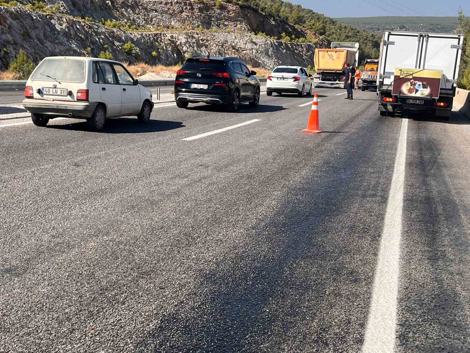 Muğla’nın Milas ilçesi Boğa Yokuşu mevkiinde meydana gelen trafik kazasında, yola dökülen yağ, diğer araçların da kaza yapmasına neden oldu.