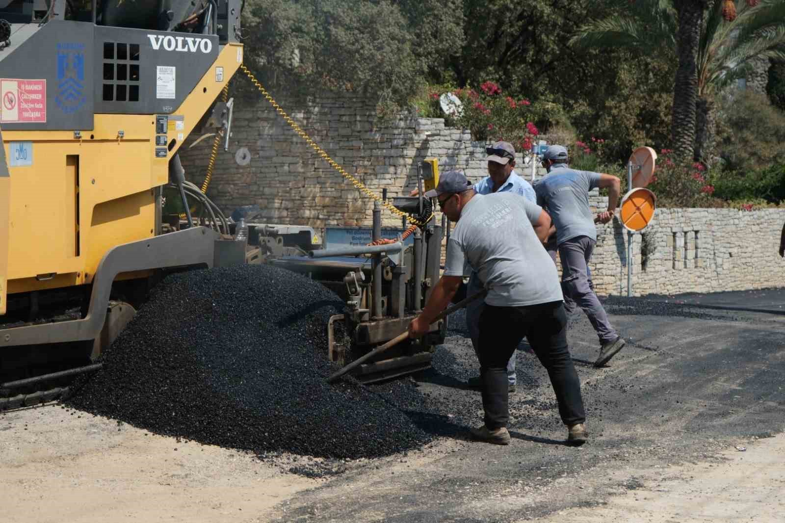 Bodrum Belediyesi ekipleri, altyapı çalışmaları tamamlanan cadde ve sokaklarda üst yapı çalışmalarına devam ediyor.
