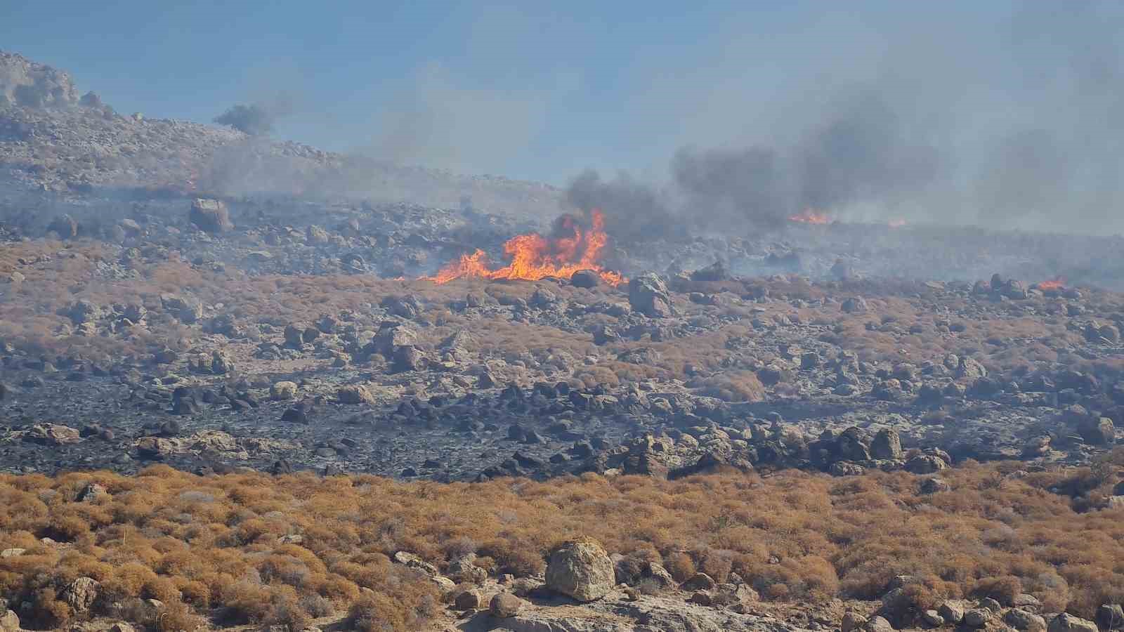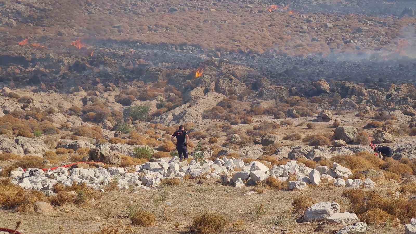 Yangında geniş bir otluk alan zarar gördü.