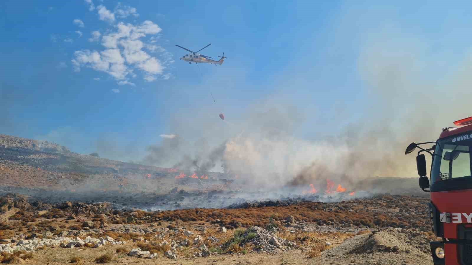 Muğla’nın Bodrum ilçesinde otluk alanda çıkan yangın, havadan ve karadan müdahaleyle kontrol altına alındı.