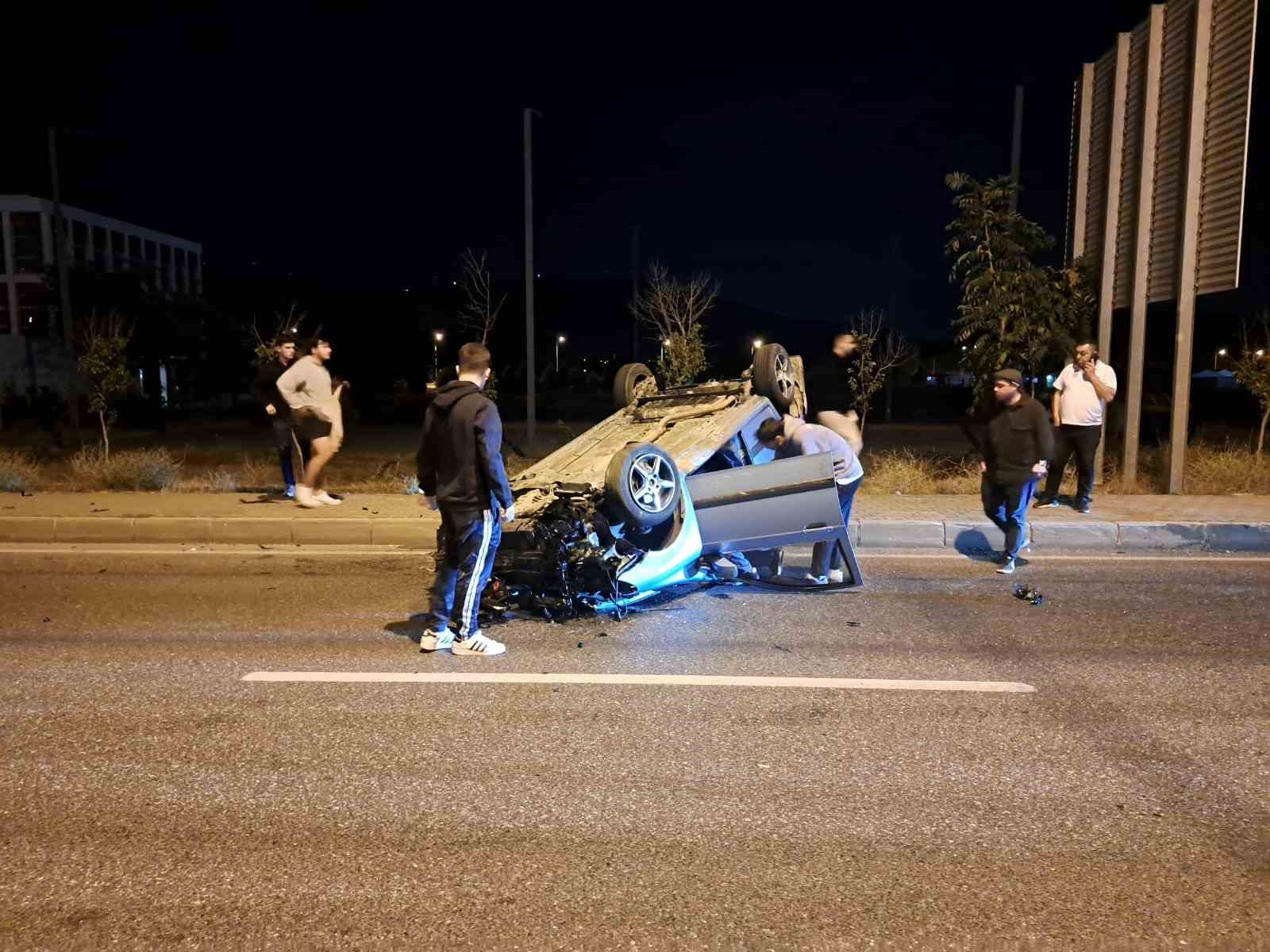 Direğe çarpan otomobil takla attı, sürücü kazayı yara almadan atlattı