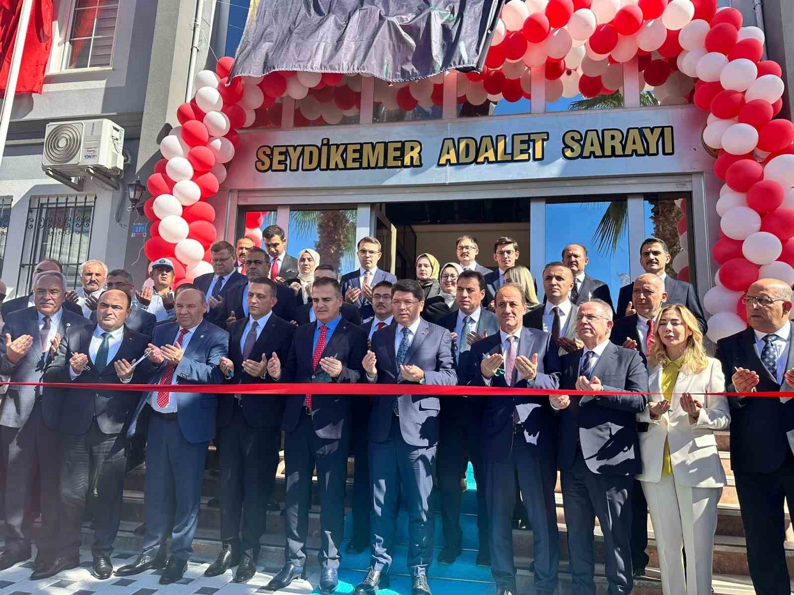 Adalet Bakanı Yılmaz Tunç’un katıldığı Seydikemer ilçesinde bulunan Adliye Sarayı’nın açılışı dualar ile gerçekleştirildi. Tunç, Seydikemer Adalet Sarayı’nın açılış töreninde yaptığı konuşmada, “2002 müstakil adliye binası 78 idi. Bugün Seydikemer ile birlikte 367 müstakil adliye binasına ulaştık. İhtiyaca göre bunların sayısını artıracağız” dedi.