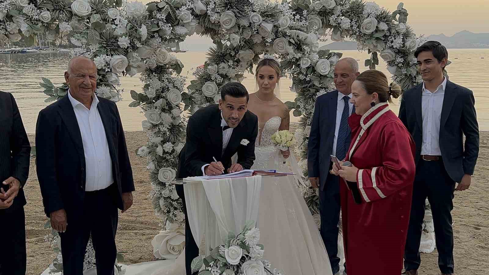 Bodrum FK’nın başarılı orta saha oyuncusu Samet Yalçın, Güliz Gener ile Bodrum’un gözde otellerinden Ambrosia’da yapılan görkemli bir törenle dünya evine girdi. Sahilde gerçekleşen nikah, çiftin romantik anlarına sahne oldu.