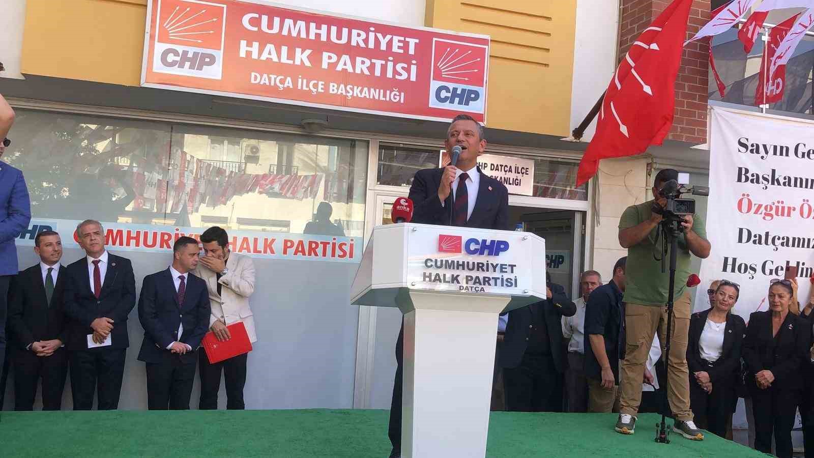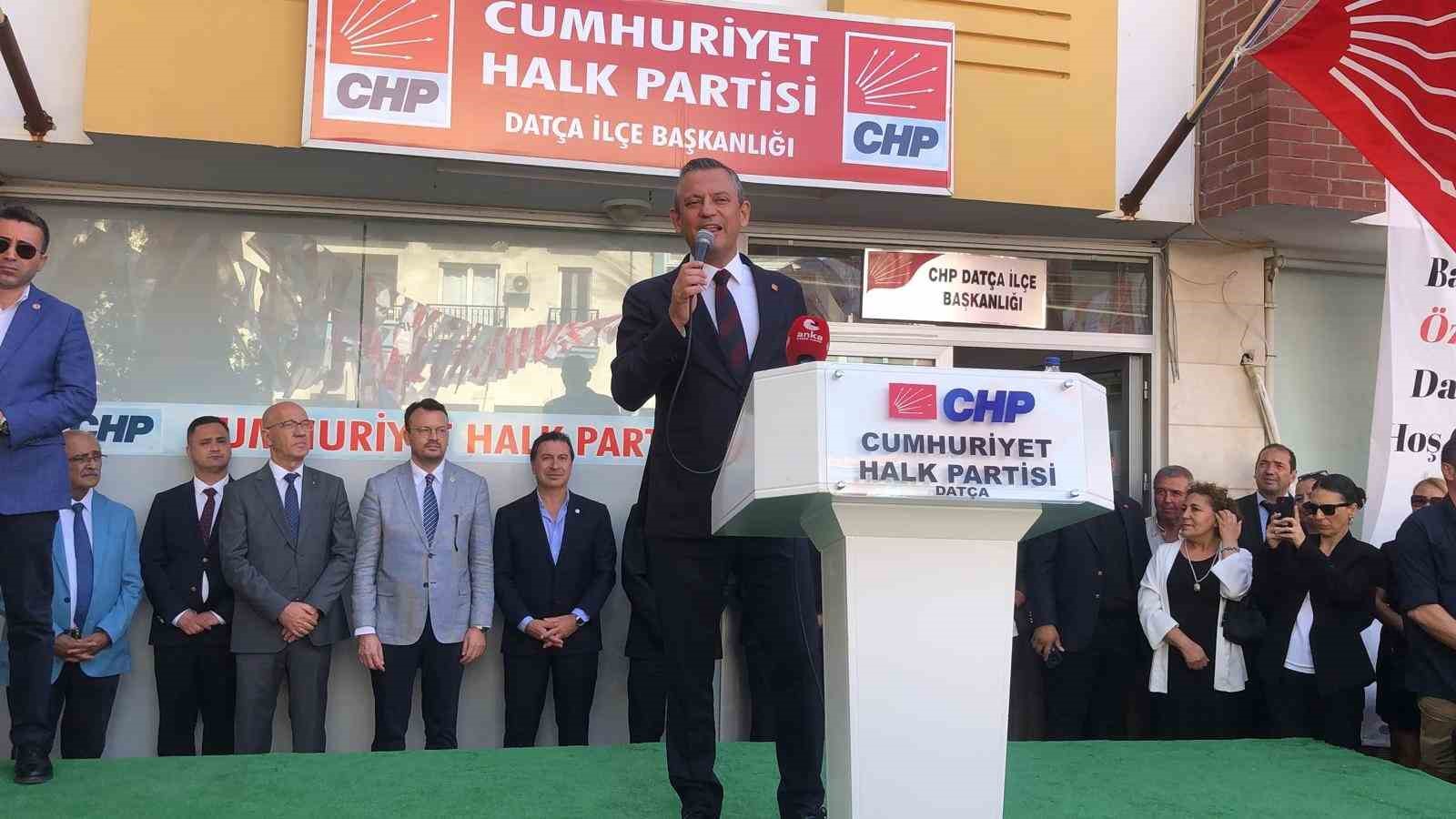 Datça CHP İlçe Başkanlığı önünde gerçekleştirilen programda kısa bir konuşma yapan Özel; “Ahmet başkan bu kadar yüksek bir oy alınca, Datça’daki su sorununu da biliyorum. Dedim ki; Datçalılar size bir mesaj vermiş. Büyük bir destekle yüksek bir hizmet bekliyorlar. Biraz önce dedi ki; ’Birinci etap çalışmayı bitirdik, 8 mahallenin su sorununu çözdük. 2. etaba başladık, geri kalanını da çözüyoruz’ dedi. Kendisine teşekkür ediyorum tebrik ediyorum. Bugüne kadar çalıştıkları gibi umduğumuz ve umduğunuz gibi dürüst çalıştıklarında, gayretli çalıştıklarında, emeğe değer verdiklerinde, doğayı koruduklarında, kent suçlarına karşı mücadele ettiklerinde bu yaptıkları görev bizim partimize iktidar yolunu açacak. İktidarın anahtarı onların cebinde” dedi.