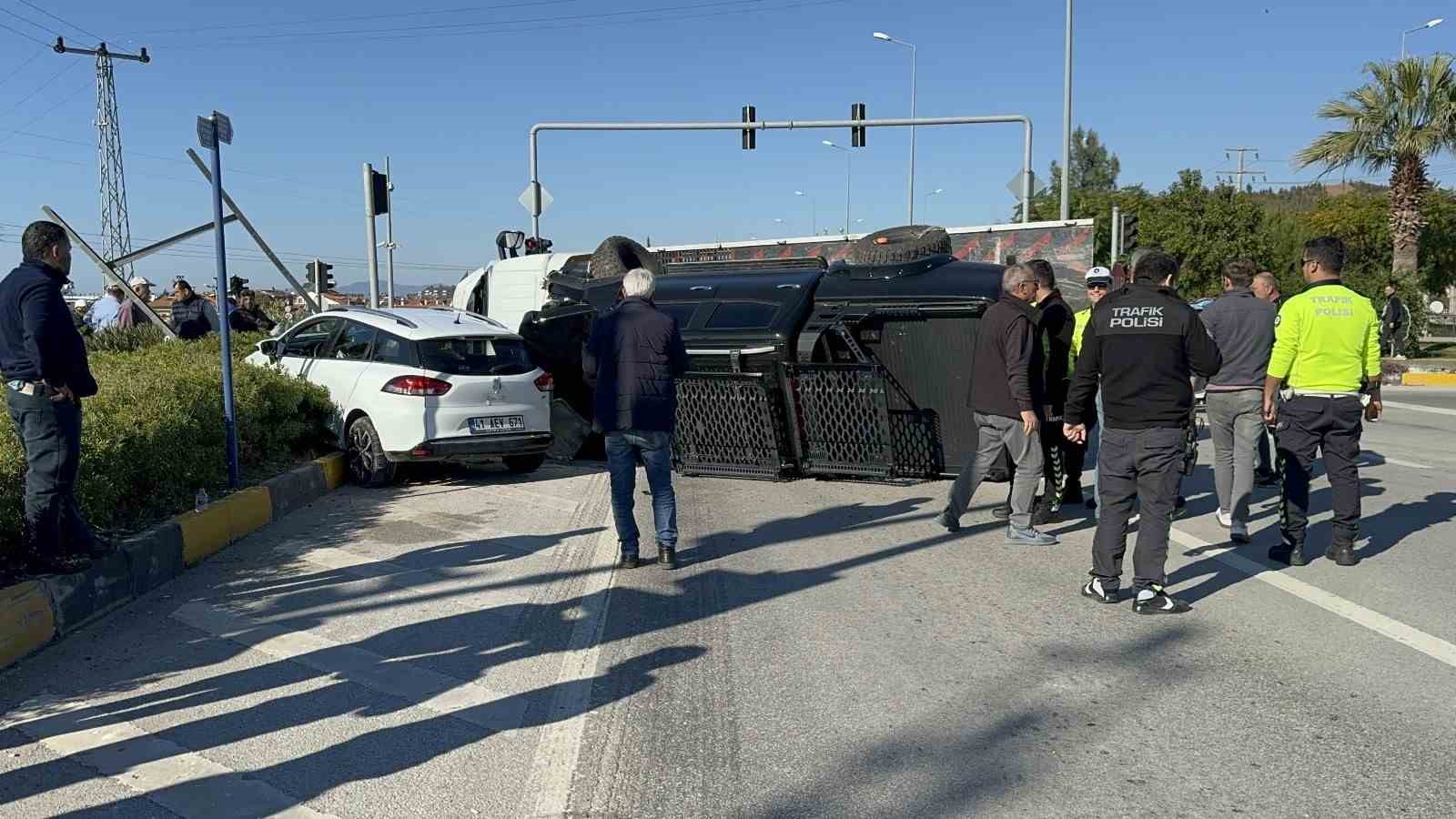 Edinilen bilgiye göre, Antalya-Fethiye karayolu Çatalarık Mahallesi’nde yaşanan kazada, Meftun C. (36) yönetimindeki 48 ARL 612 plakalı çekici, Eyüp S. (19) idaresindeki 41 AEV 671 plakalı otomobille çarpıştı. Çarpışmanın etkisiyle kamyonet yüklü çekici devrilirken, otomobil bir direğe çarparak durabildi. Kazayı görenler 112 Acil Çağrı Merkezi’nden yardım istedi. İhbar üzerine kaza yerine polis, itfaiye ve sağlık ekipleri sevk edildi. Olayda, otomobil sürücüsü Eyüp S. ile araçta bulunan Yunus Emre F. (26) ve Eda F. (33) yaralandı. Yaralılar, sağlık ekiplerinin olay yerindeki ilk müdahalesinin ardından Fethiye’deki hastanelere kaldırıldı. Kaza nedeniyle Antalya-Fethiye karayolundaki trafik akışı bir süre polis kontrolünde sağlandı.