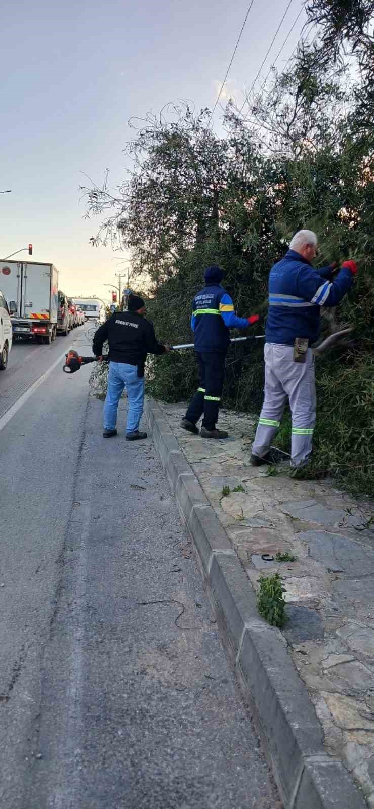 Meteoroloji Genel Müdürlüğü tarafından yapılan uyarının ardından nöbet tutan ekipler, devriye görevi gerçekleştiren zabıta ekipleri ile vatandaşlardan gelen ihbarları anında değerlendirerek olumsuzlukları giderdi. Bodrum Belediyesi Park ve Bahçeler Müdürlüğü ekipleri tarafından devrilen ağaç ve kırılan ağaç dalları ile ilgili de çalışma yapıldı.