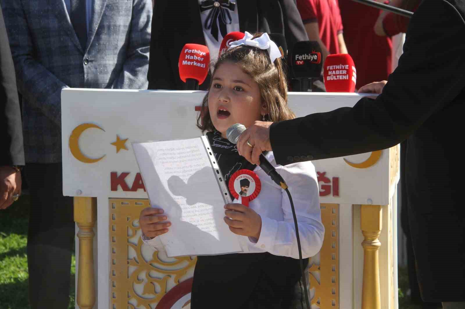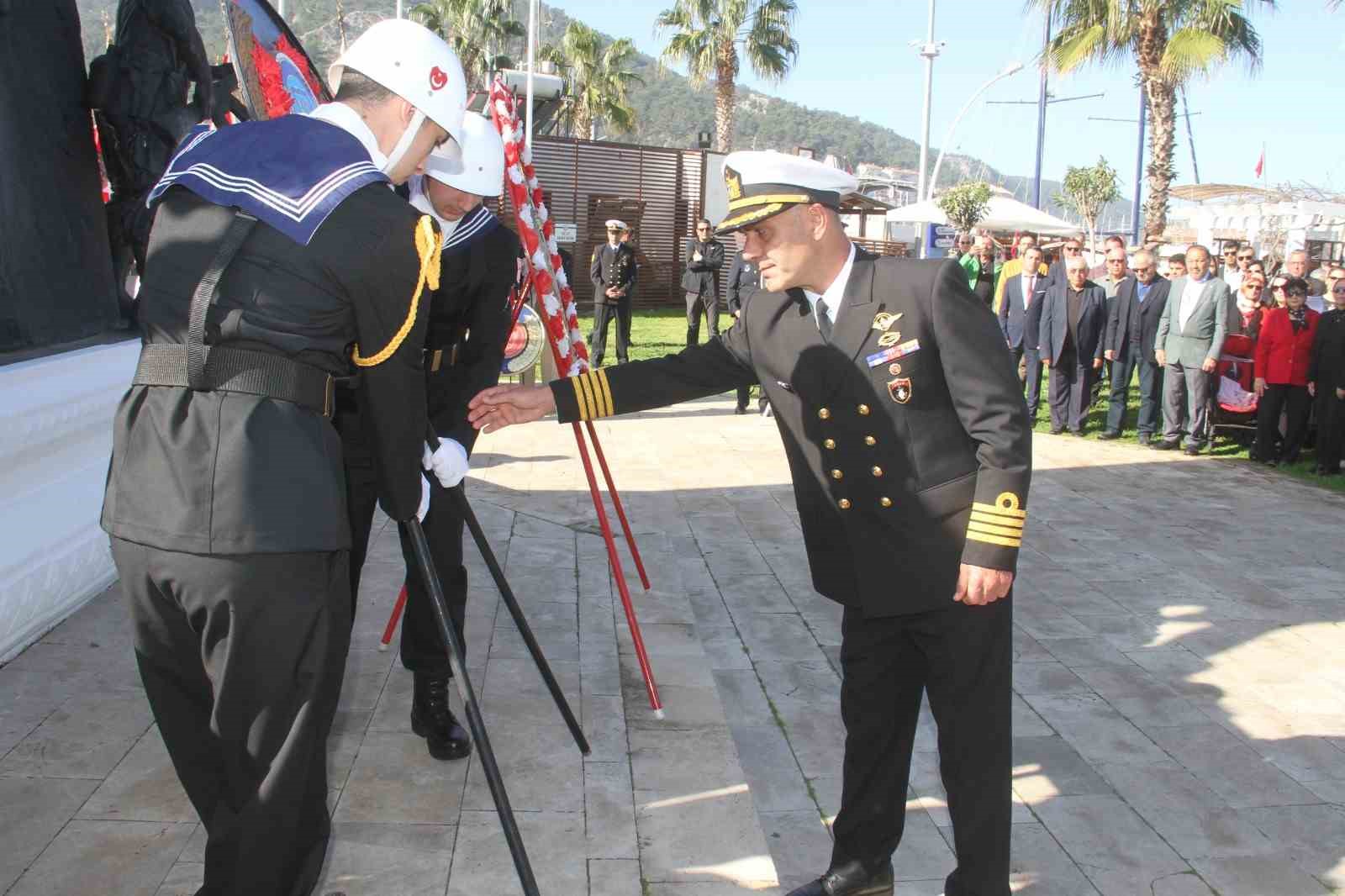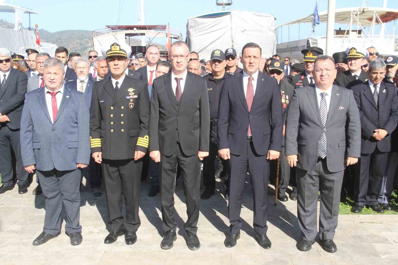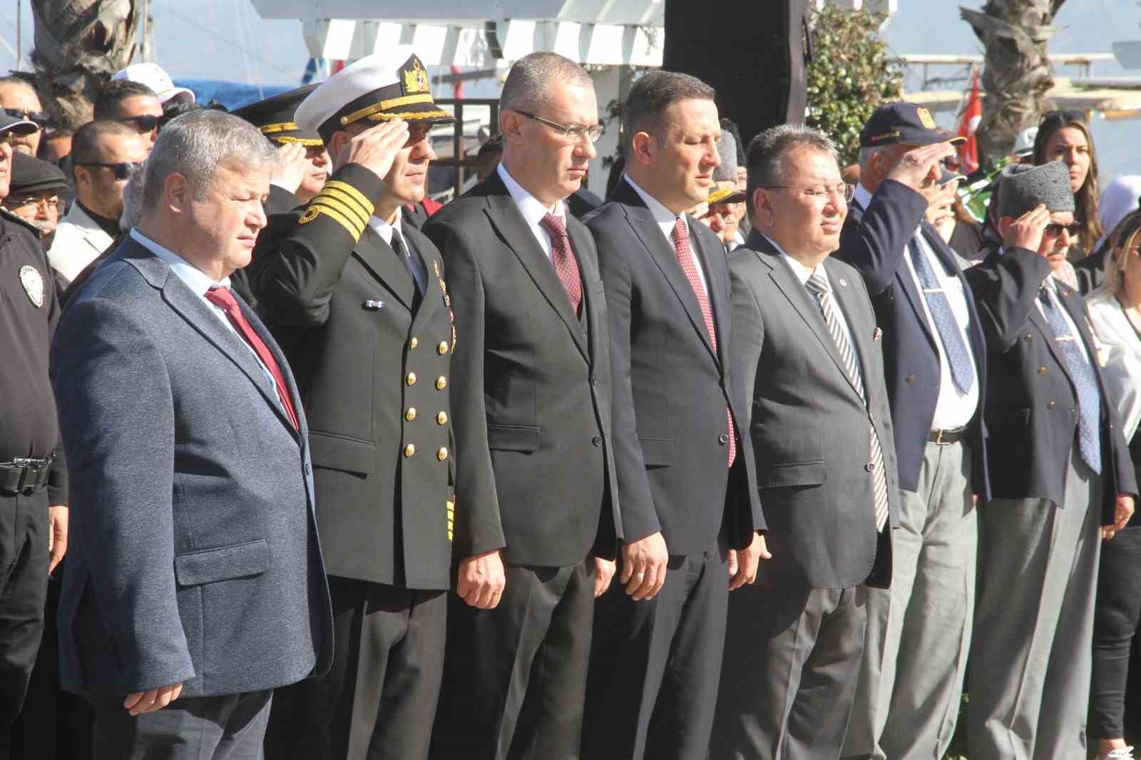 Törende Fethiye Kaymakamı İsmail Hakkı Ertaş, Belediye Başkan Vekili Bülent Uysal, Garnizon Komutanı Dz. Alb. Dalaman Dz. Hv. Üs Komutanı Okan Mumcu, Türkiye Muharip Gaziler ve Şehit Aileleri Yardımlaşma ve Dayanışma Derneği Başkanı Ali Cantürk Şehitler Anıtı’na çelenk sundular. Ardından Türkiye Cumhuriyeti’mizin kurucusu Ulu önder Mustafa Kemal Atatürk ve tüm şehitlerimiz için 1 dakikalık saygı duruşunda bulunulup, İstiklal Marşı’mız söylendi.