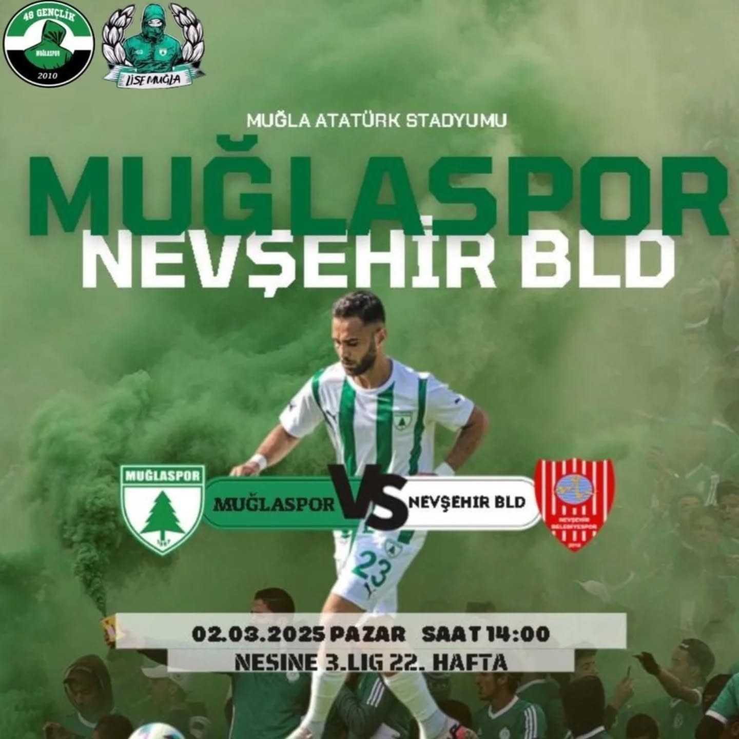 Muğlaspor, 2 Mart 2025 Pazar günü Nevşehirspor ile kendi evinde karşı karşıya gelecek. Muğla Atatürk Stadı’nda oynanacak karşılaşmada, yeşil-beyazlı ekip 3 puanla dönmeyi hedefliyor.
