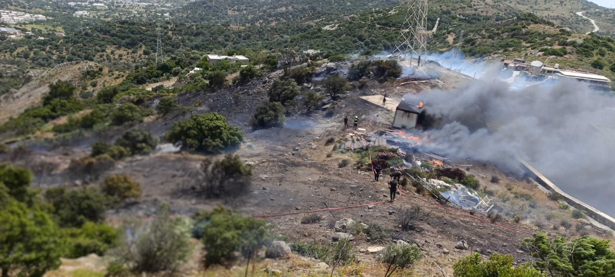 Bodrum’un Yalıkavak mahallesinde öğle saatlerinde yangın çıktı.