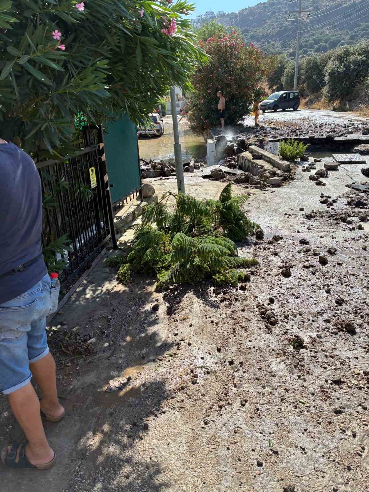 Bodrum’da ana su isale hattı patladı, yol çöktü