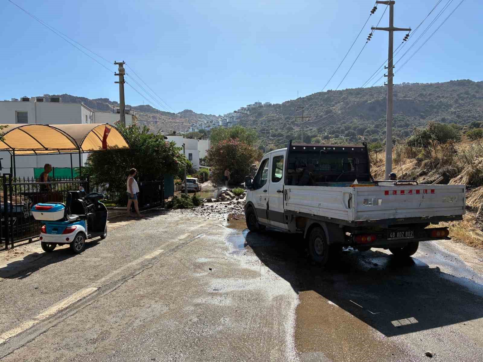 Patlamayla birlikte caddede tonlarca su çevreye yayılırken, bölgedeki bazı evlerin bahçeleri suyla doldu. Vatandaşlar, suyu kendi imkanlarıyla tahliye etmeye çalıştı. Güvenlik amacıyla yol araç trafiğine kapatılırken, olay yerine ekipler sevk edildi. Bölgede su kesintisi yaşanırken, yıllardır benzer sorunların yaşandığı Bodrum’da MUSKİ ekipleri onarım çalışması başlattı. Vatandaşlar, su sıkıntısının had safhaya ulaştığı bu günlerde MUSKİ’nin bir an önce sorunu çözmesini beklediklerini ifade ettiler.