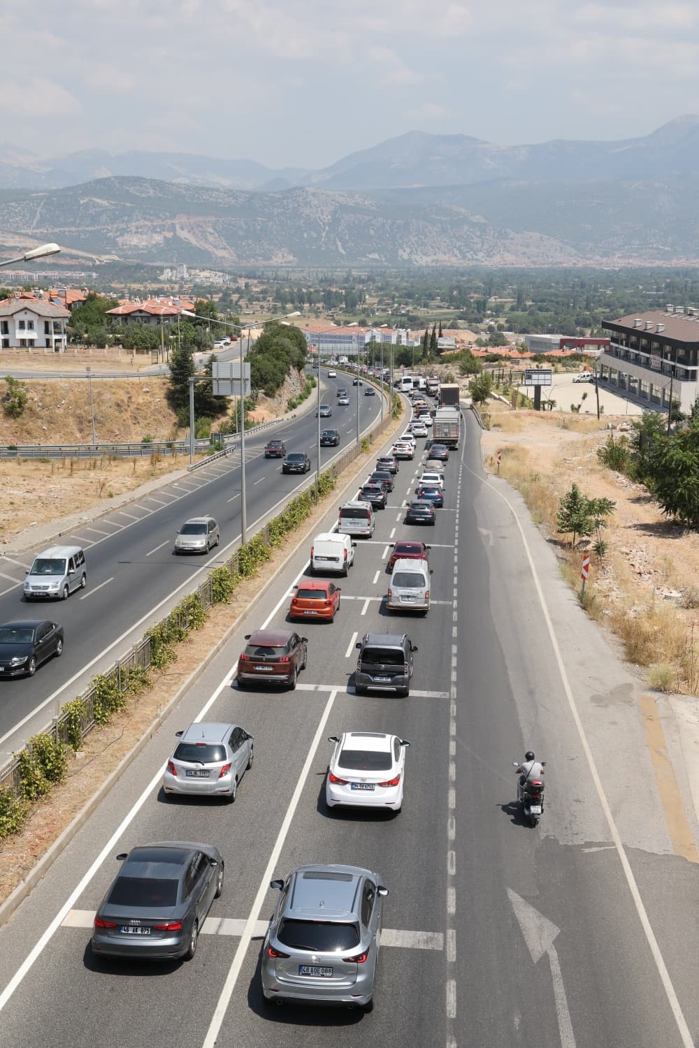 MUĞLA’NIN MARMARİS, DATÇA VE FETHİYE GİBİ GÖZDE TURİZM MERKEZLERİNDE TATİL YAPAN VATANDAŞLARIN DÖNÜŞE GEÇMESİYLE BİRLİKTE, TRAFİKTE YOĞUNLUK DA ARTTI. TATİLİN SONA ERMESİYLE BİRLİKTE ÖZELLİKLE MUĞLA’NIN MENTEŞE İLÇESİ GİRİŞİNDEKİ DENİZLİ-AYDIN KAVŞAĞINDA UZUN ARAÇ KUYRUKLARI OLUŞTU.