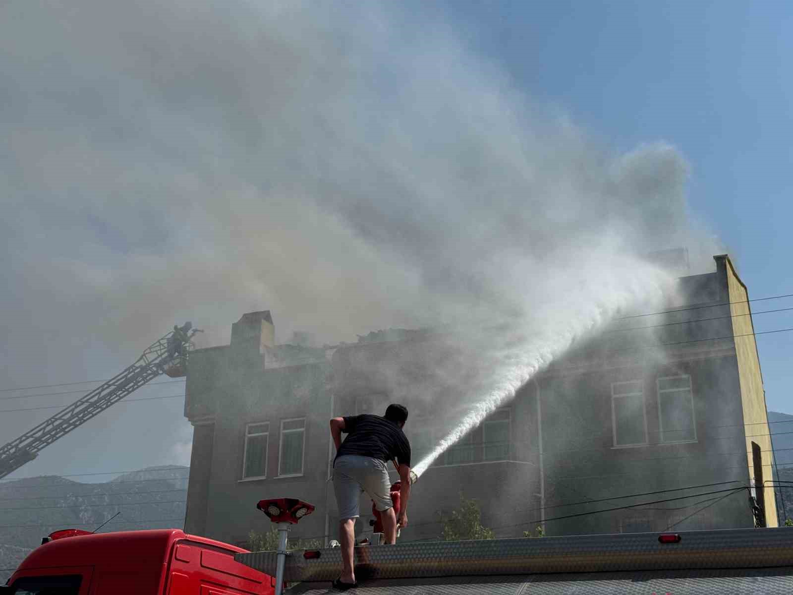 Muğla’nın Fethiye ilçesinde 3 katlı bir evin çatı katında çıkan yangın, itfaiye ekiplerinin yaklaşık 1 saatlik çalışması sonucu söndürüldü.