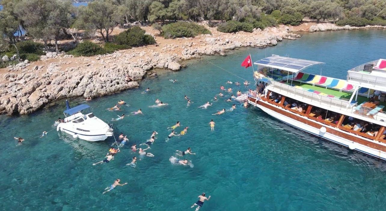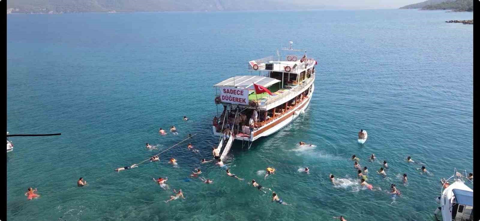 Muğla’nın vazgeçilmez geleneklerinden davul zurna eşliğinde teknede renkli görüntülere sahne olan mahalleliler bir yandan denize girerek serinledi bir yandan müzik eşliğinde coştu.