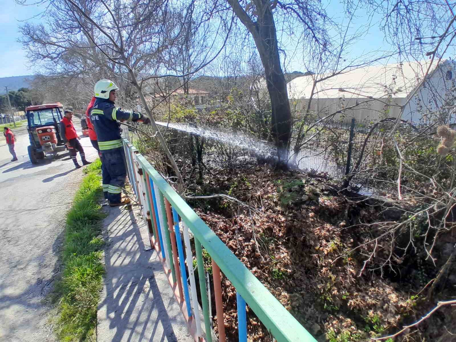 Muğla’nın Menteşe ilçesine bağlı Yeşilyurt Mahallesi Maşat mevkiinde arazide bulunan çalılık ve otluk alanda yangın çıktı.
